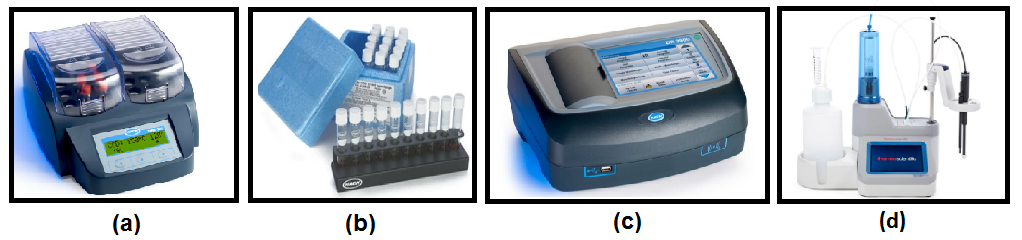 Gambar 2. Kebutuhan Analisa COD (a) Reaktor khusus COD (b) Reagen Uji COD (c) Alat Spektrofotometer (d) Alat Automatic Titrator